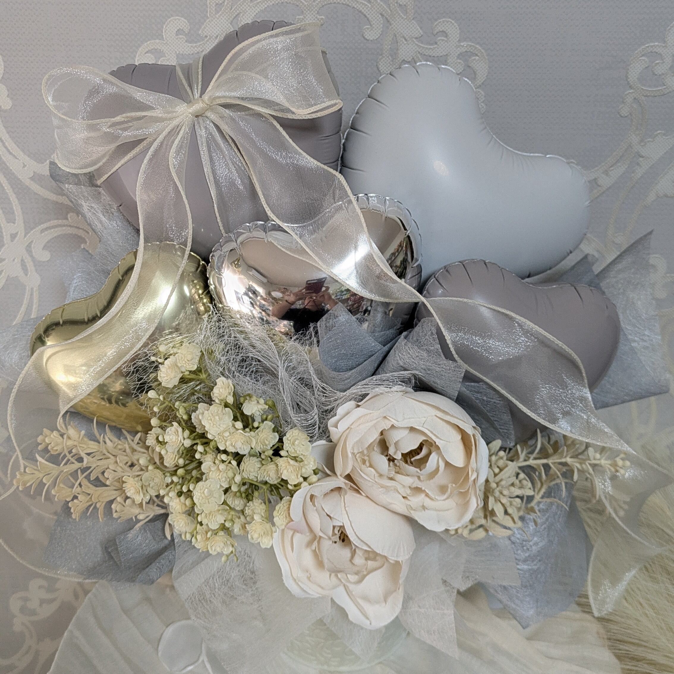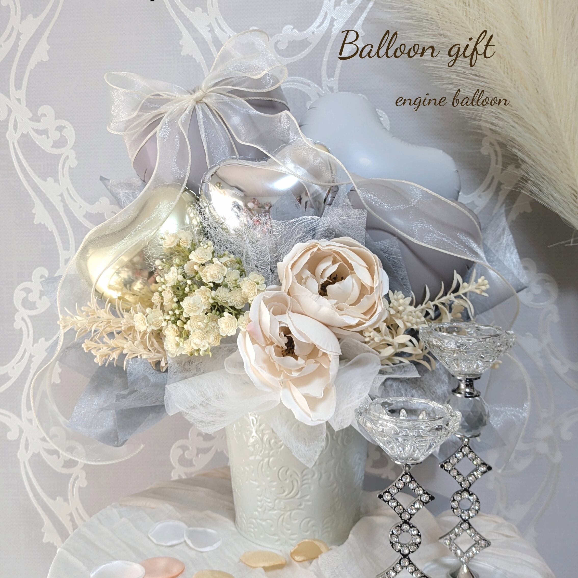 【人気商品!シックなデザイン×ホワイトローズバルーンギフト】