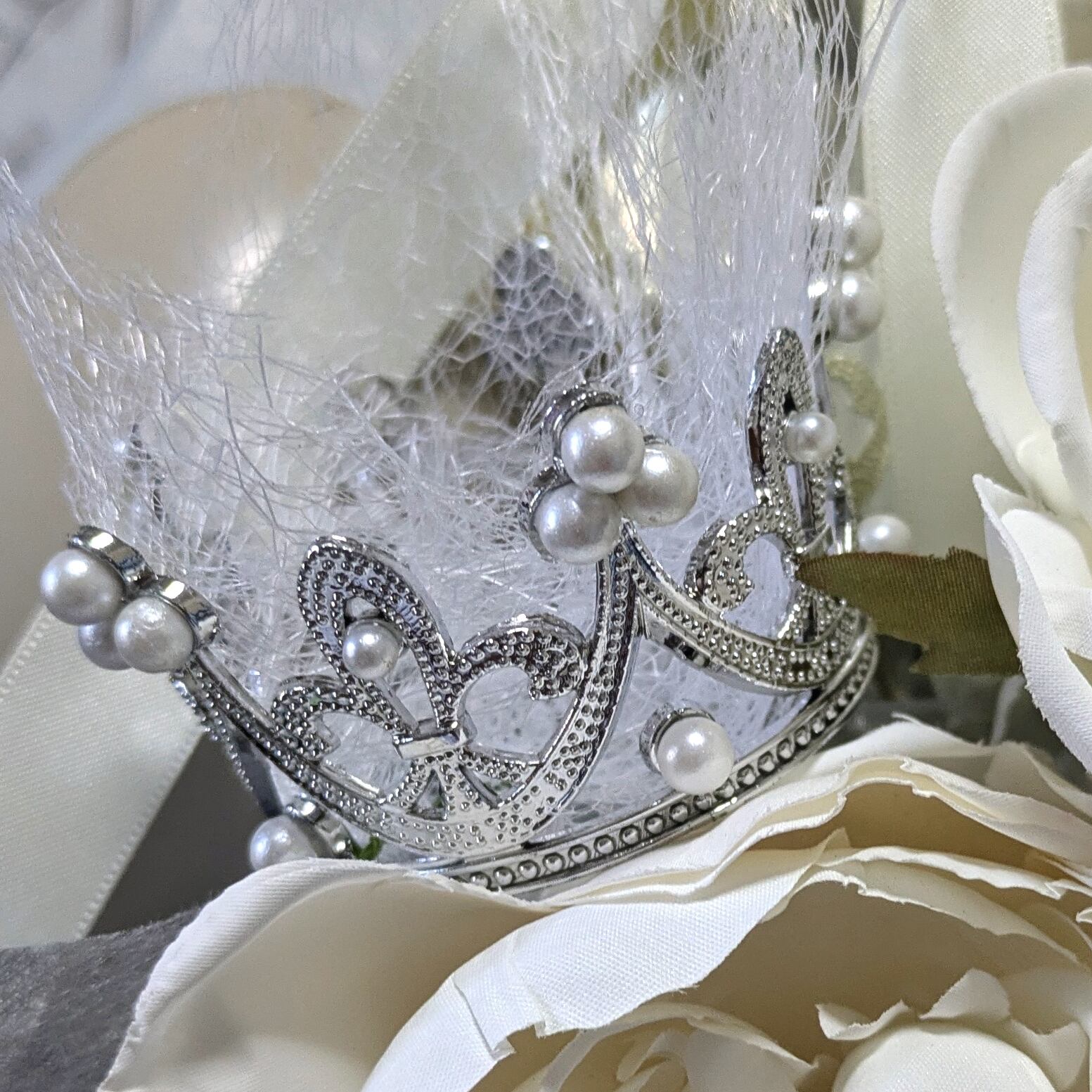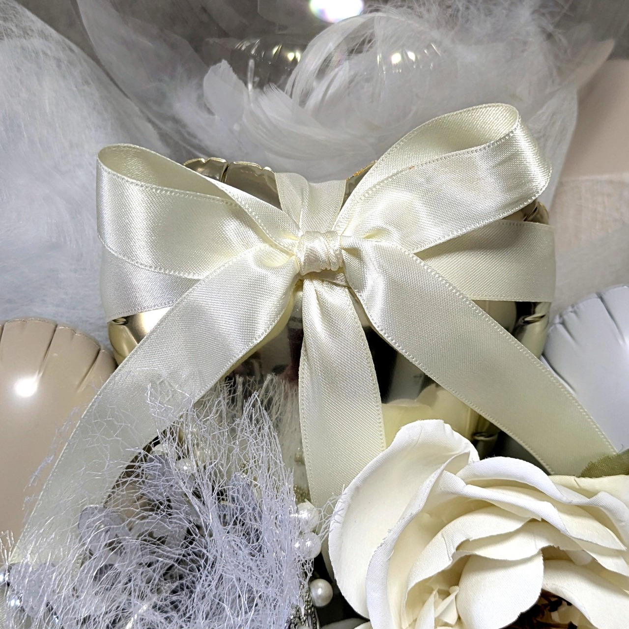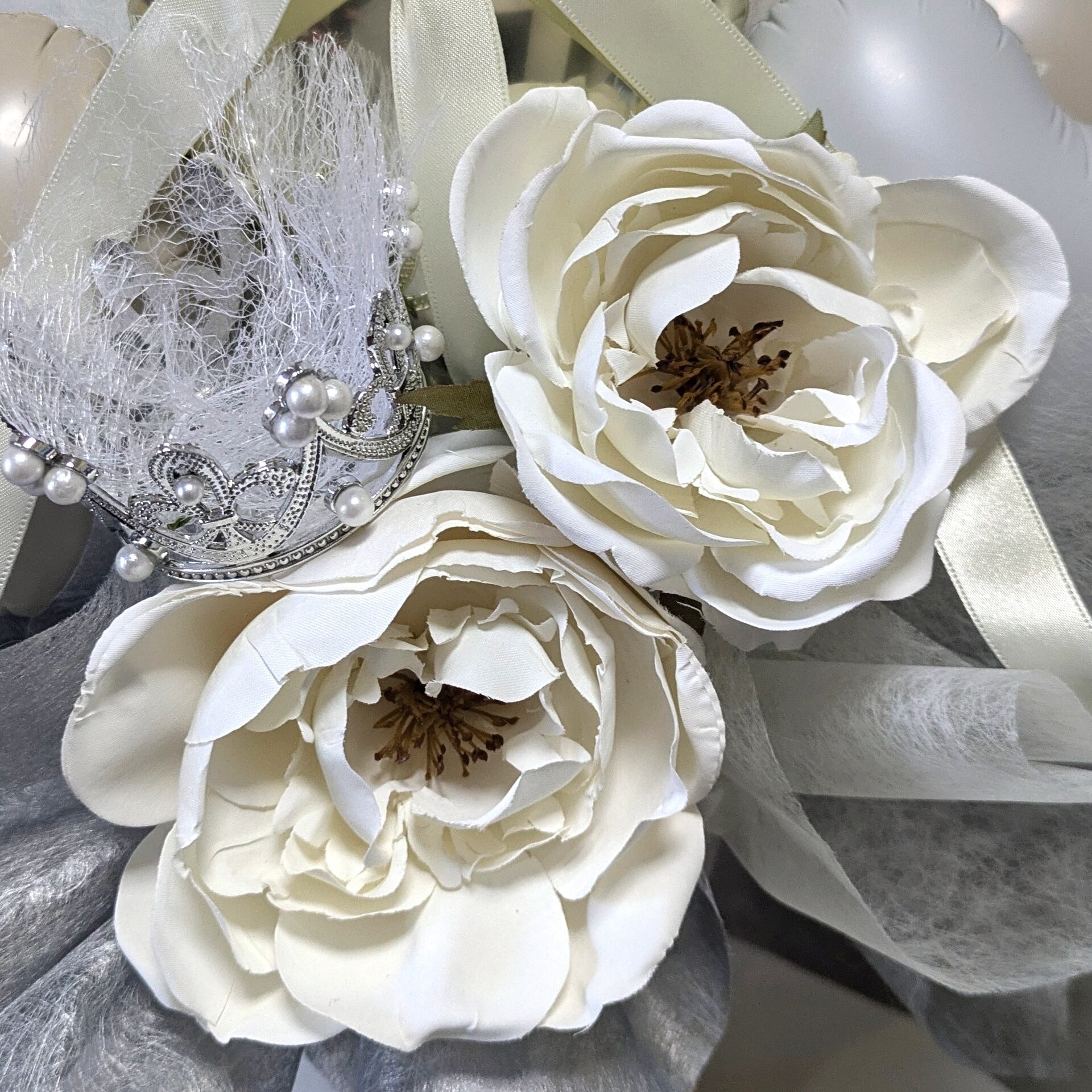 華やかなシルバークラウンと気品あふれるデザインのバルーンが融合したこちらのギフトは、特別な日のために生まれました。高級感のあるシルバーの輝きが、あなたの贈り物を一段と引き立て、お祝い事や記念日の演出にぴったりです!