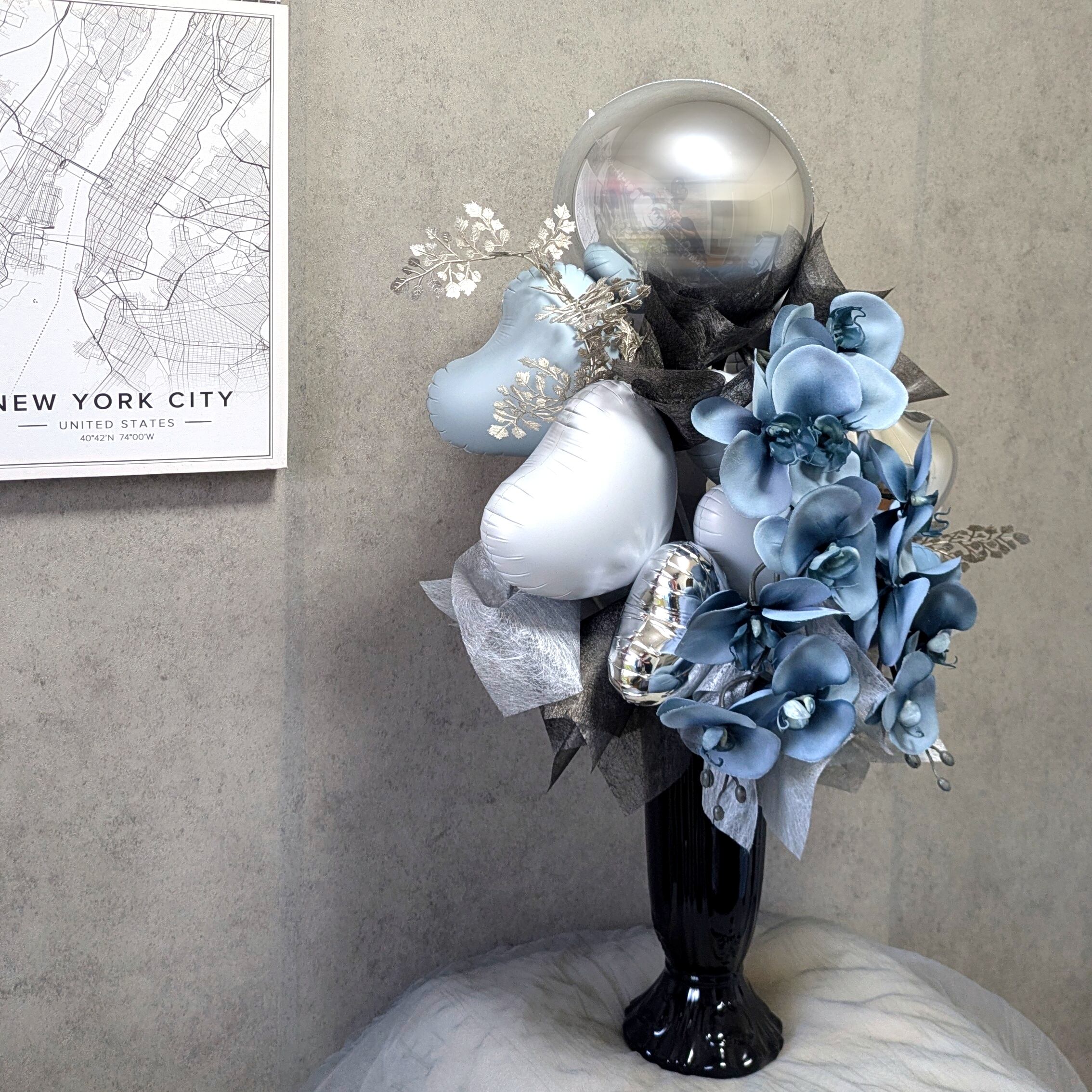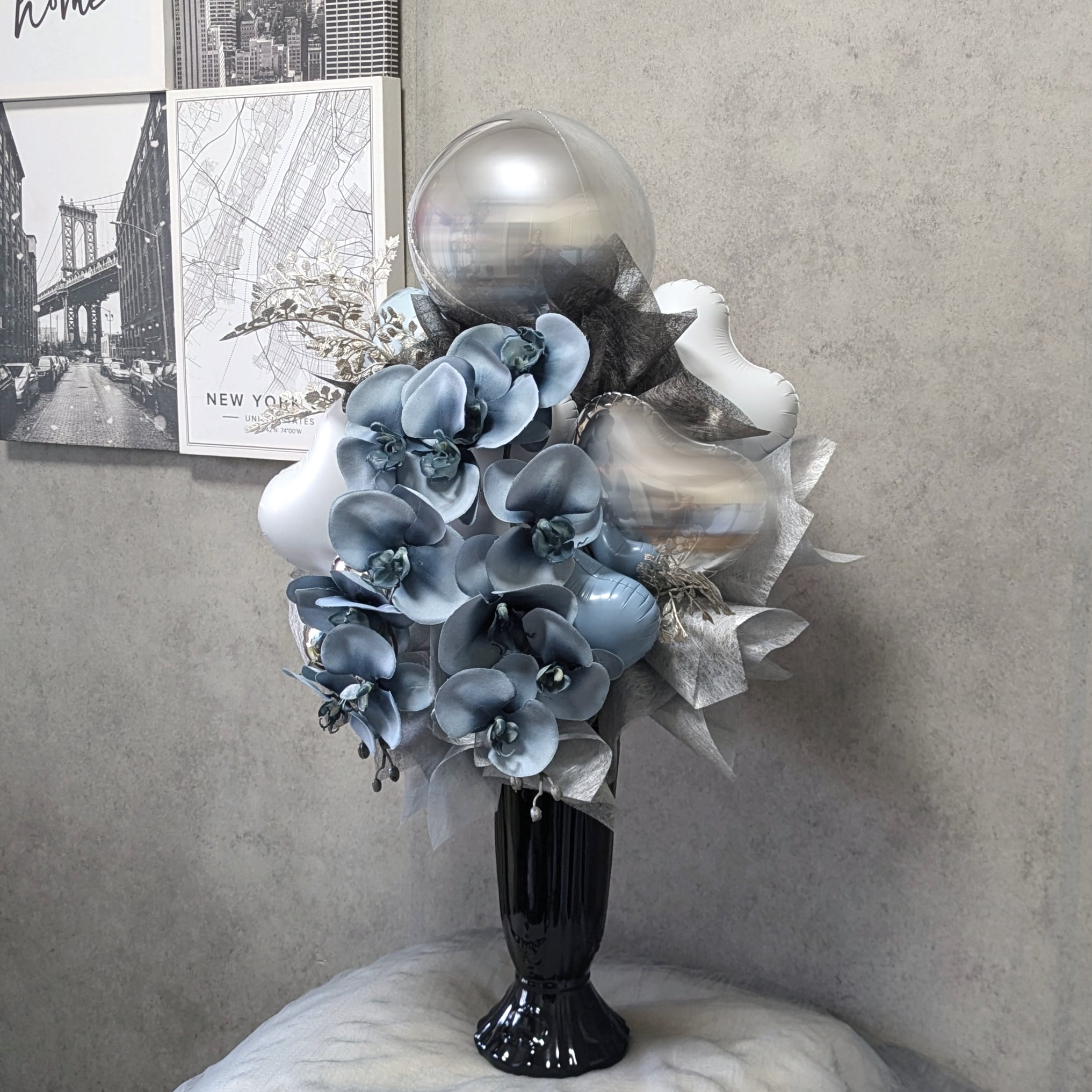 【グレートーンで魅せる、胡蝶蘭とバルーンの上質ギフト】