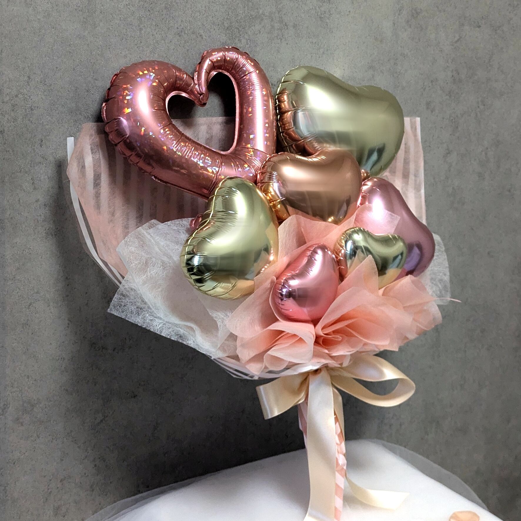 このエレガントなローズゴールド×シャンパンゴールドのバルーンブーケは、特別な瞬間をより特別にするための魅力的なアイテムです。柔らかな色合いは、インテリアとしてもお楽しみいただけることでしょう。心を込めてお届けいたします。