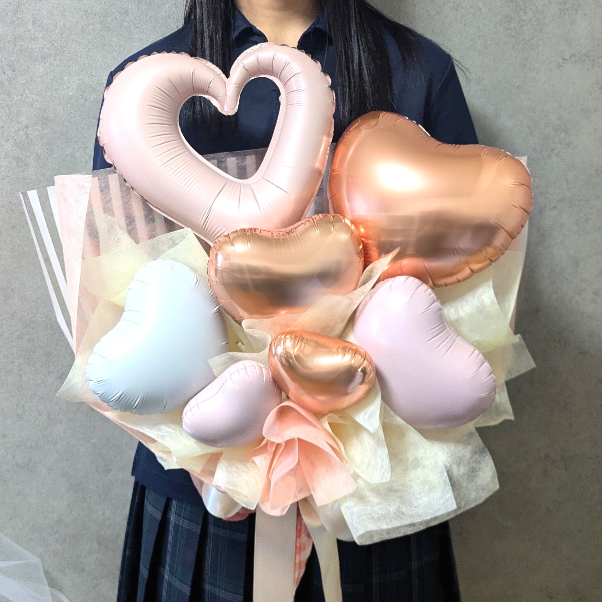 心を惹きつける【アーバンローズ&ローズゴールド】バルーンブーケが、特別な瞬間を華やかに演出します!この洗練されたデザインは、柔らかなアーバンローズと優美なローズゴールドの組み合わせが特徴で、どんなシーンにも調和し、優雅な存在感を放つ素敵なアイテムです。大切な方へのお祝い、感謝の気持ち、または特別なサプライズギフトとして、多くの方にご好評いただいております!