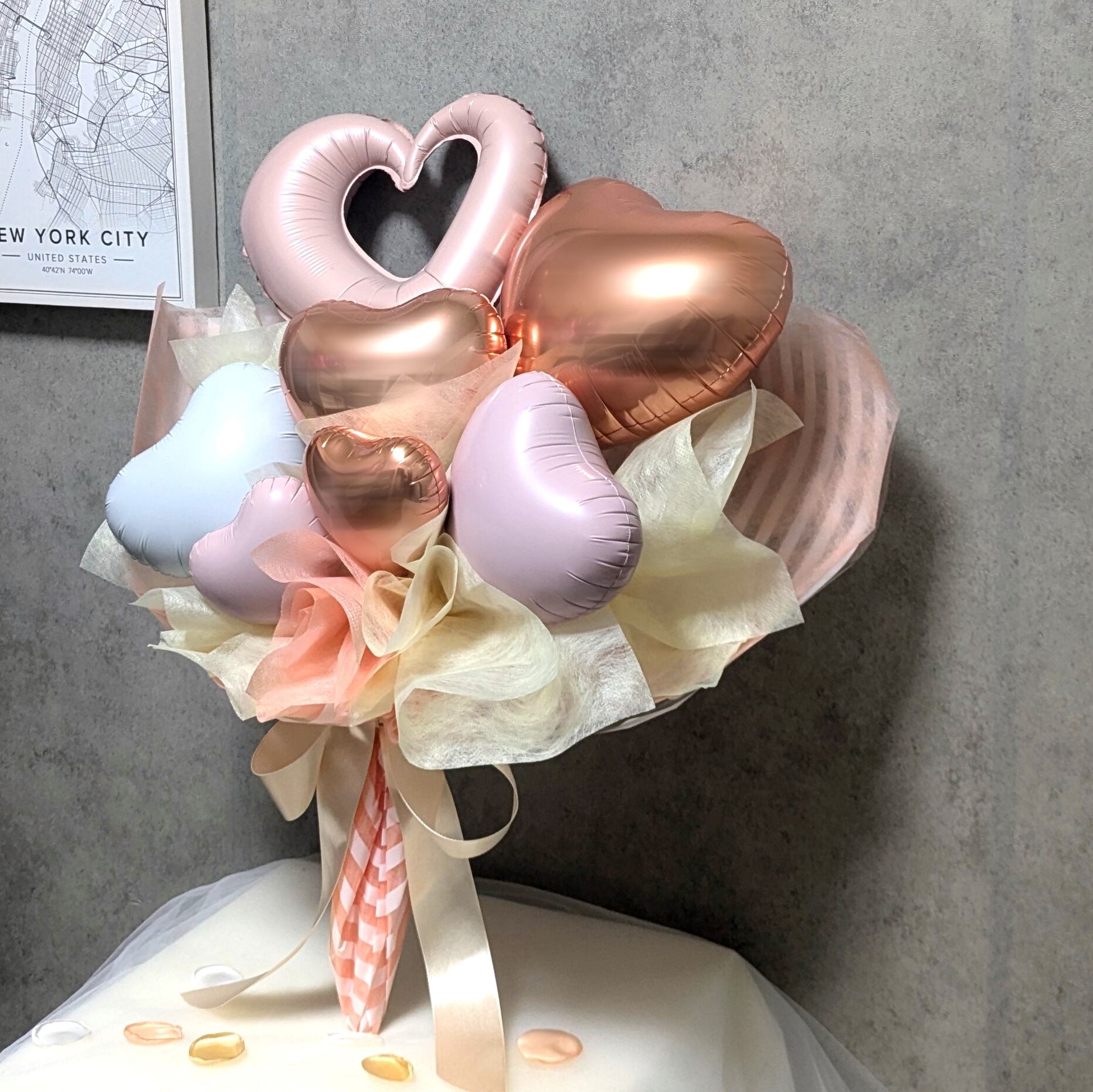 このエレガントなアーバンローズ&ローズゴールドのバルーンブーケは、特別な瞬間をより特別にするための魅力的なアイテムです。柔らかな色合いは、インテリアとしてもお楽しみいただけることでしょう。心を込めてお届けいたします。