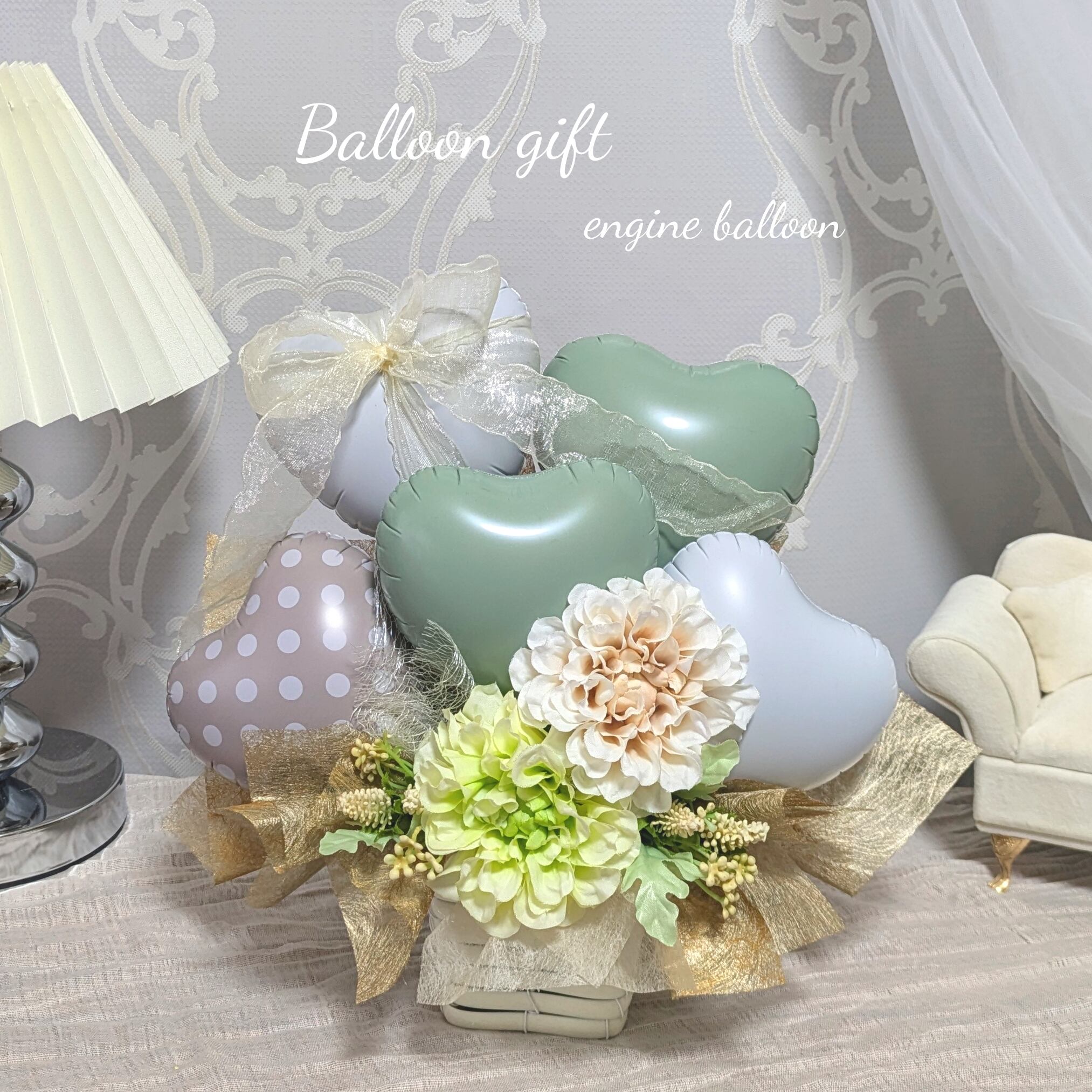 【上質な華やかさのダブルダリアのバルーンギフト】