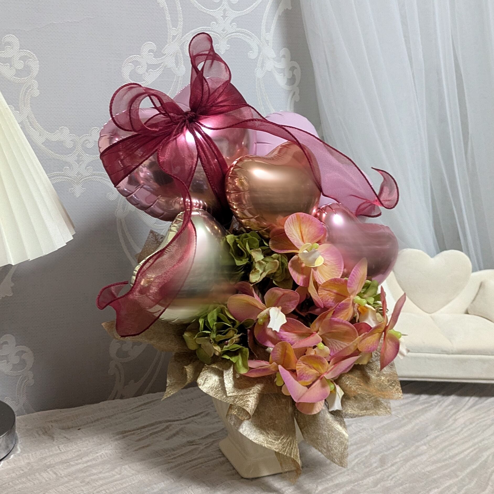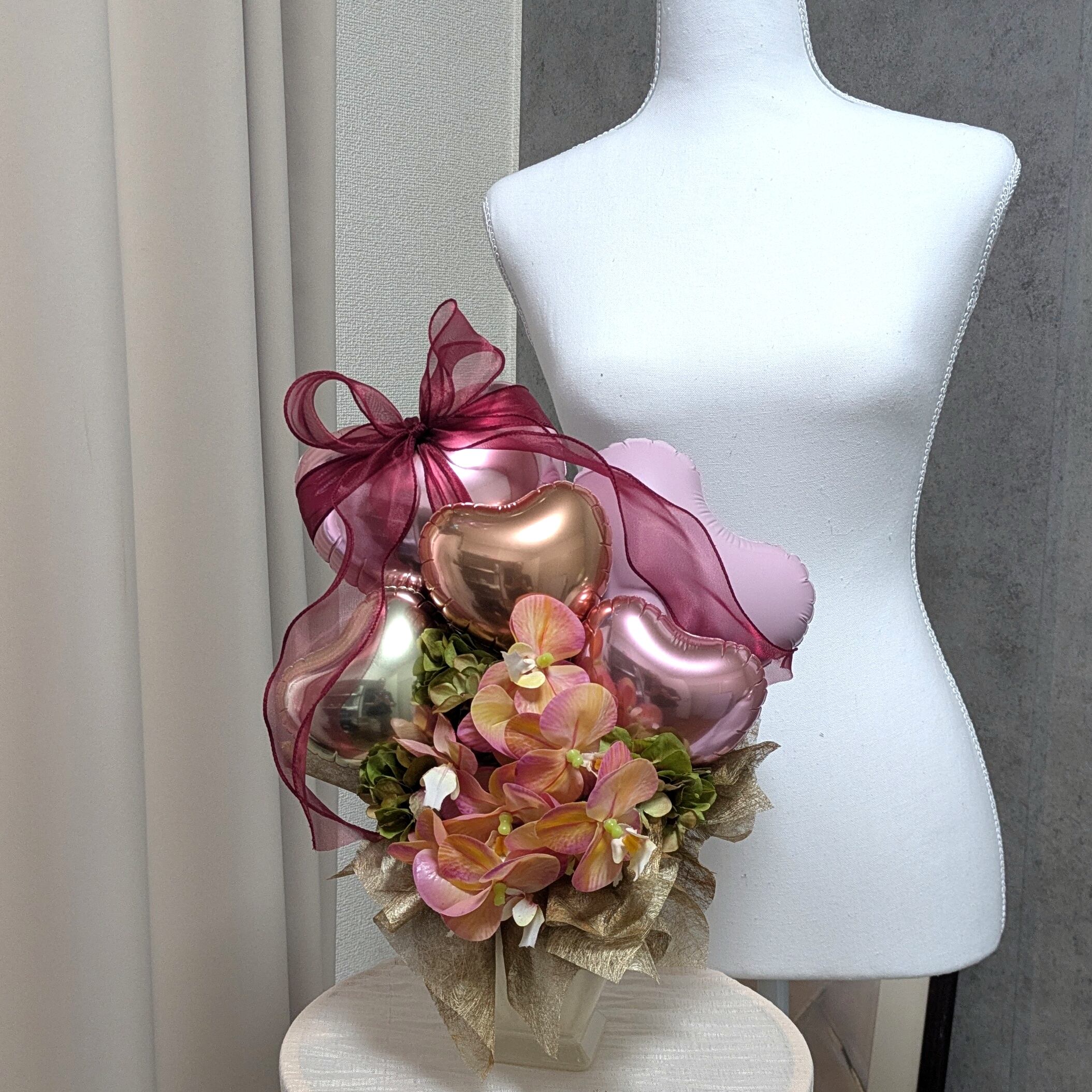 心を惹きつける大人可愛い胡蝶蘭とくすみカラーが絶妙に調和したバルーンギフトです。