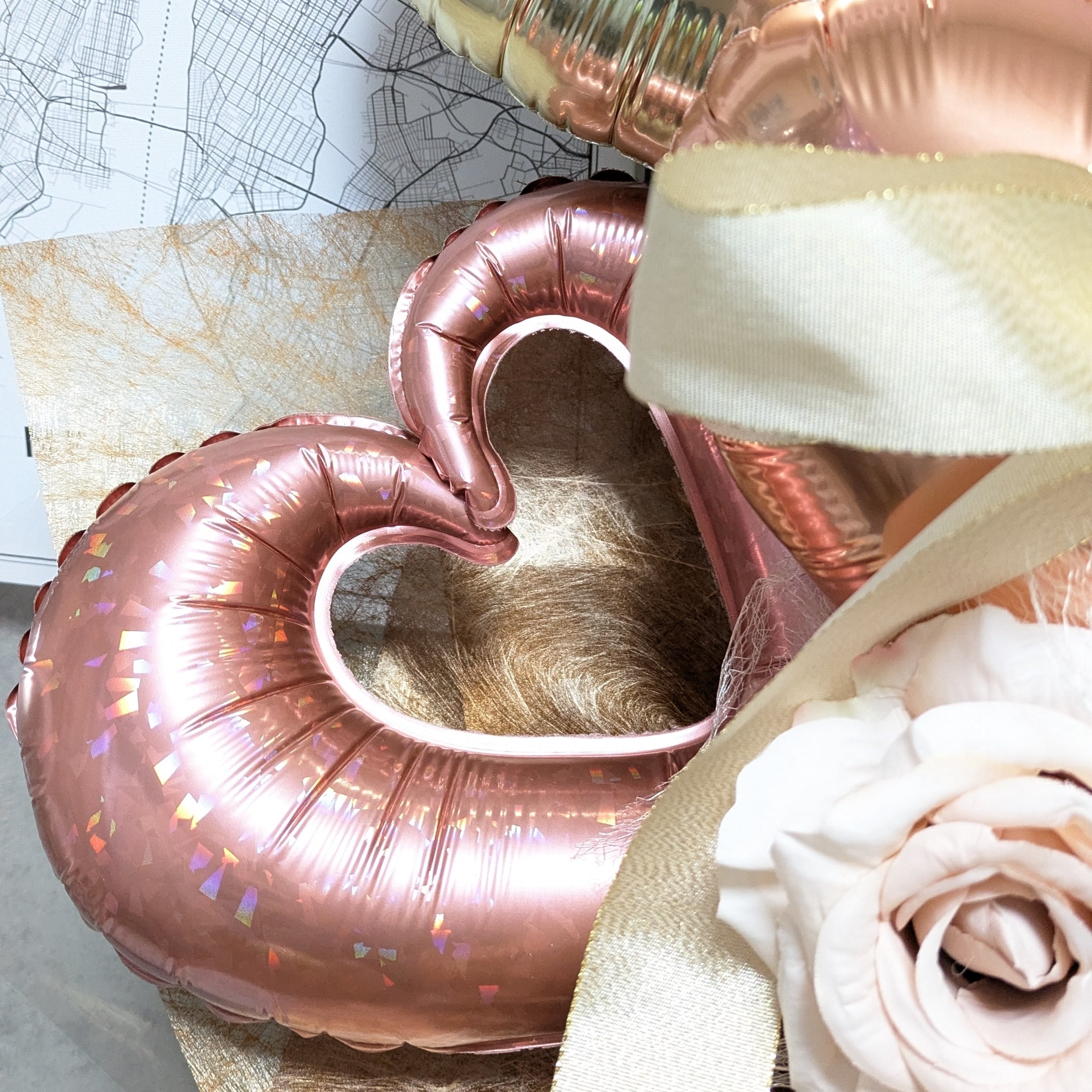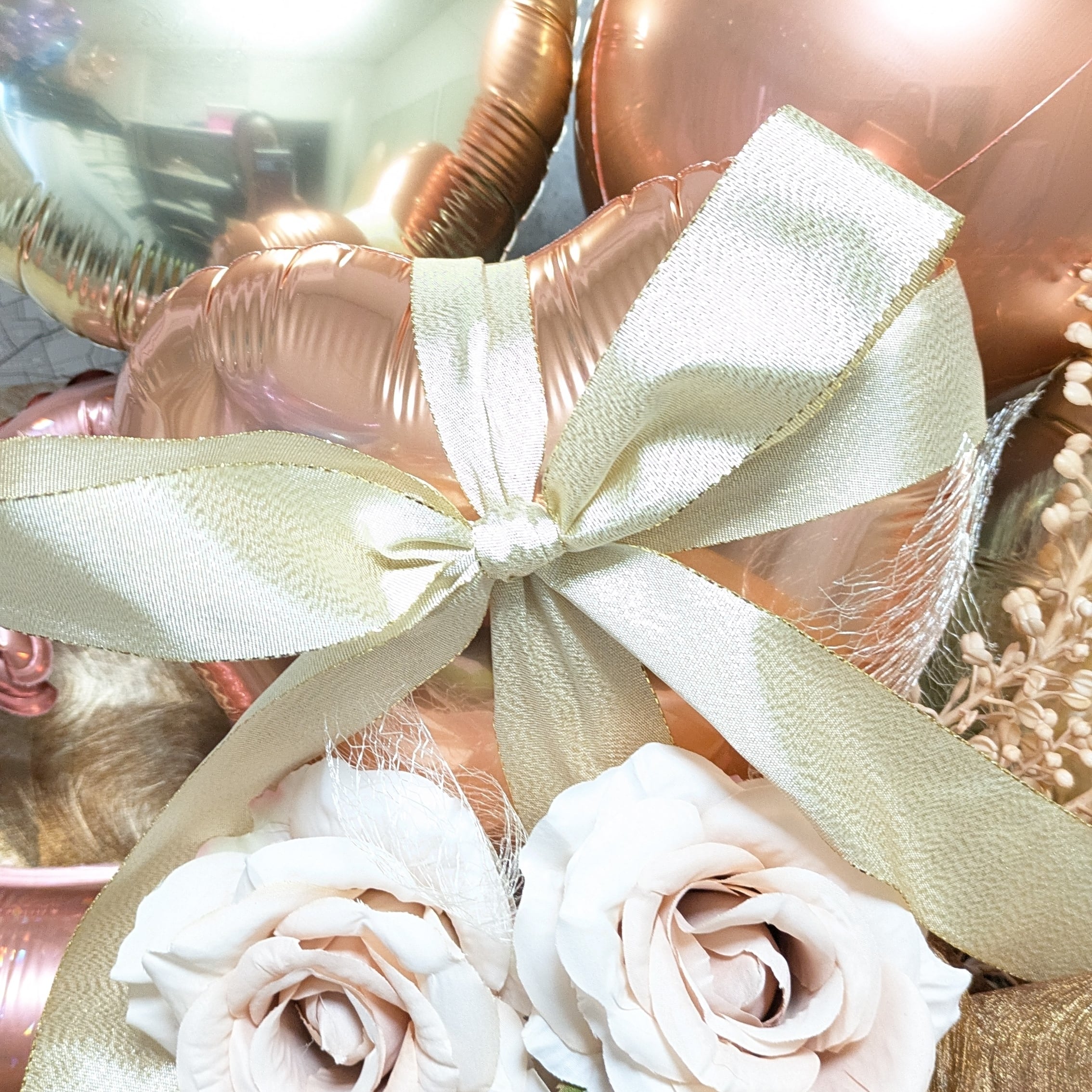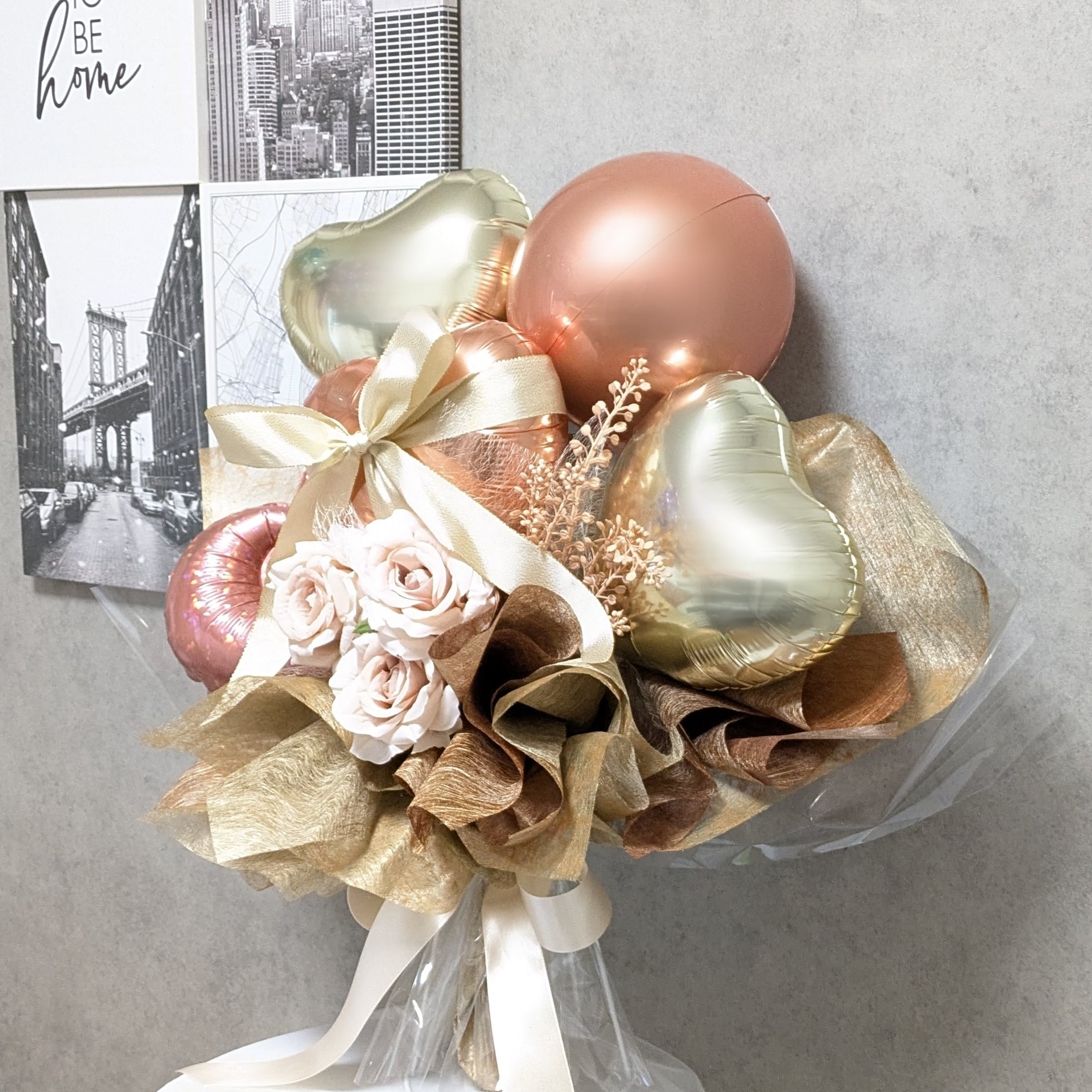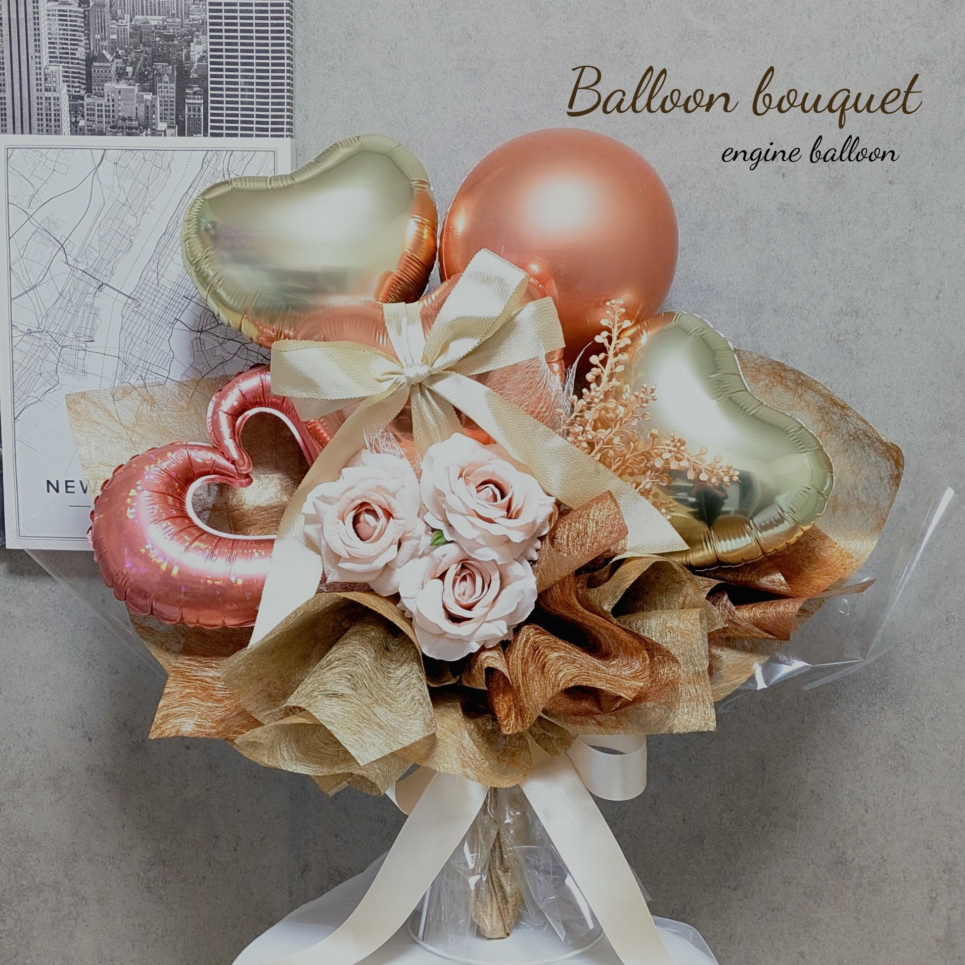 【上品に輝くローズゴールドのバルーンブーケ】