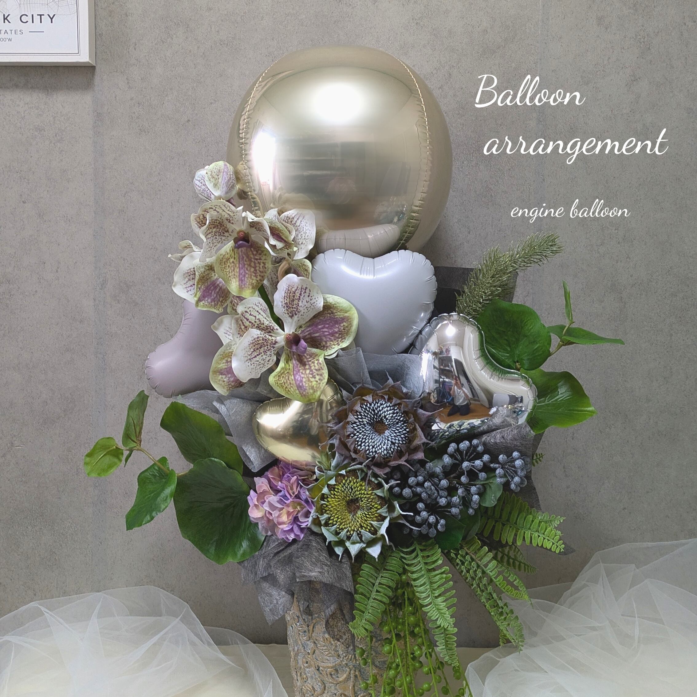 【胡蝶蘭とモードカラーが織りなす大人なバルーンギフトバルーンギフト】