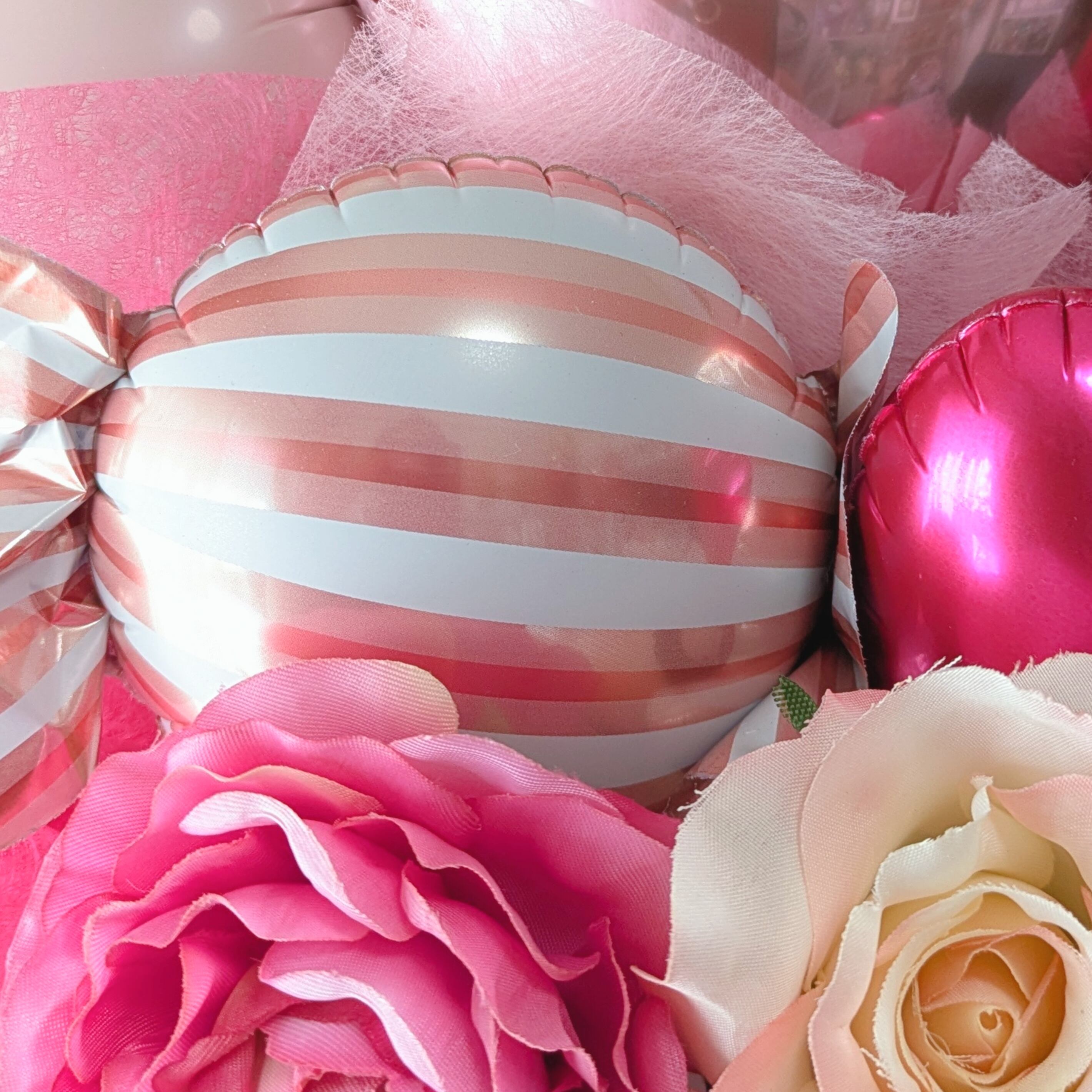 華やかなローズピンクとピンクカラーのバルーンが美しく調和した、心温まるギフトです!