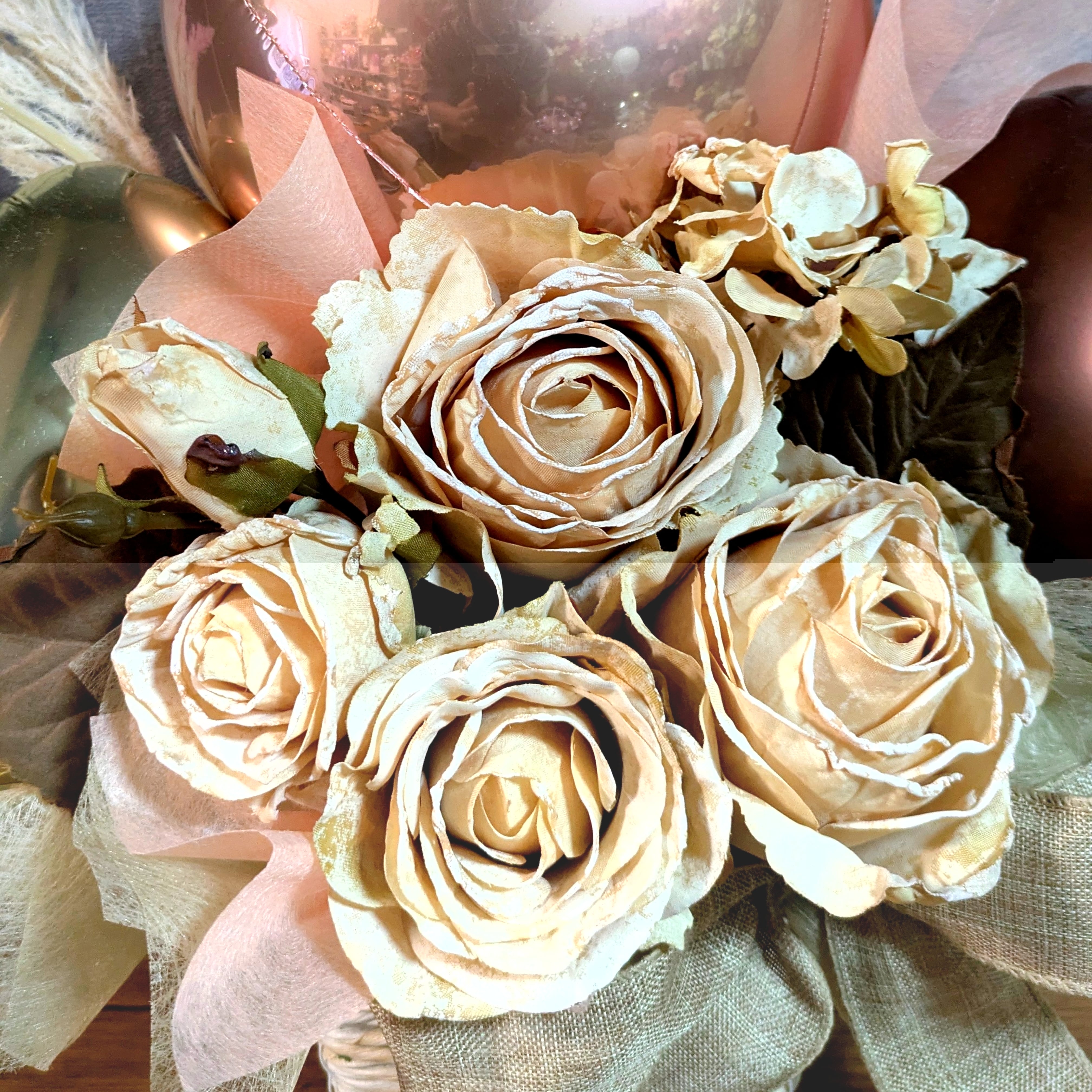 華やかなローズとアースカラーのバルーンが絶妙に調和した、心を打つギフトです!